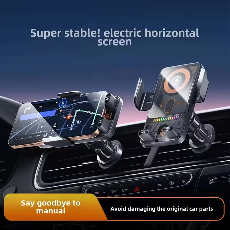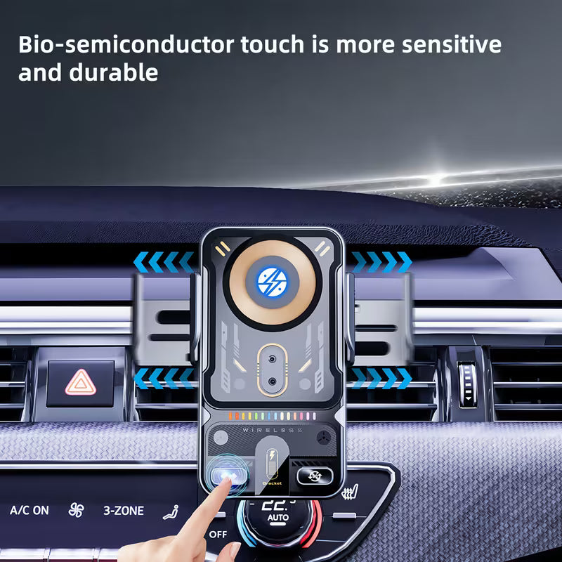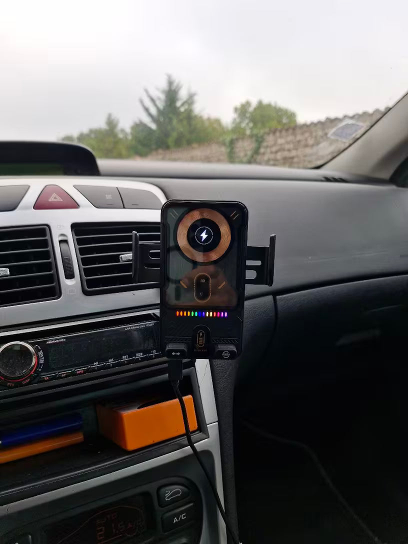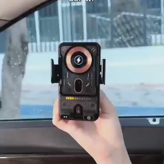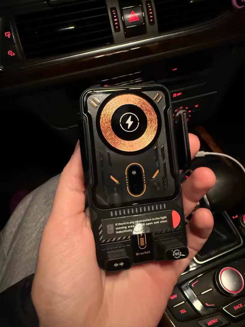 Ovaj bežični držač za telefon kombinuje sigurno držanje i brzo Qi punjenje bez kablova. Ugrađena baterija omogućava rad i bez stalnog napajanja, što ga čini izuzetno praktičnim. Automatsko zaključavanje drži telefon stabilno čak i na neravnom putu. Idealan je za navigaciju, pozive i bezbednu vožnju.
