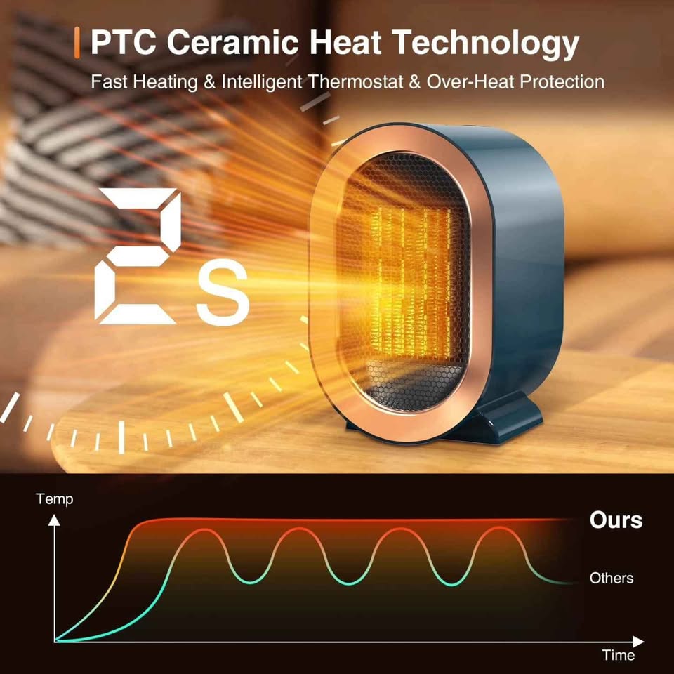 Ova kompaktna i lagana grejalica koristi naprednu PTC keramičku tehnologiju za brzo i efikasno zagrevanje prostorija do 20m² za samo nekoliko sekundi. Idealna je za ličnu upotrebu na stolu, u spavaćoj sobi ili kancelariji, pružajući toplotu bez zauzimanja puno prostora.