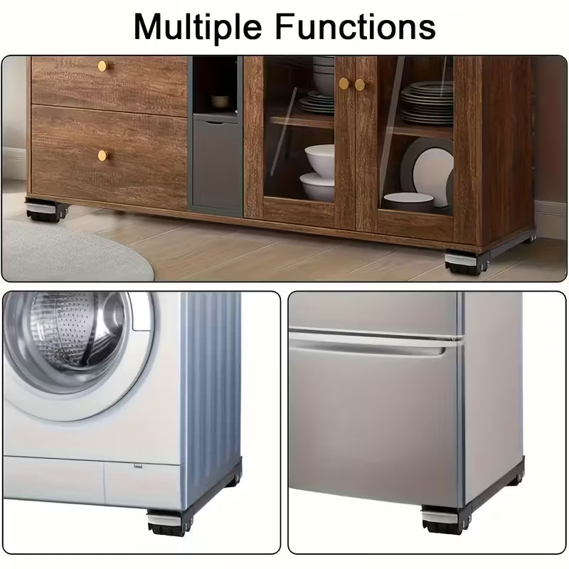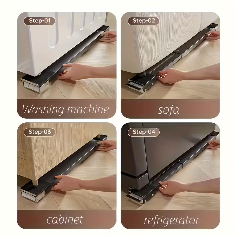 Ovaj inovativni set teleskopskih rolerki čini pomeranje teških kućnih aparata, kao što su frižideri i veš mašine, izuzetno lakim zadatkom. Sa podesivom dužinom i izdržljivim metalnim okvirom, ove baze sigurno podržavaju do 300 kg tereta bez napora.Integrisane kočnice i protivklizne podloge osiguravaju stabilnost i zaštitu vaših podova.