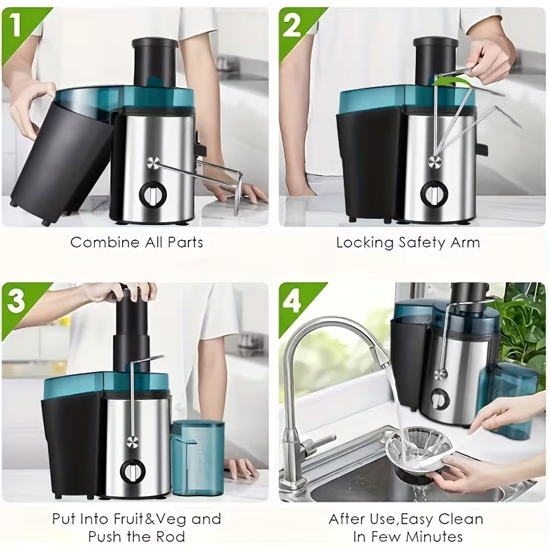 🚀Snažan motor– 450W sa dve brzine za lako ceđenje mekog i tvrdog voća.
