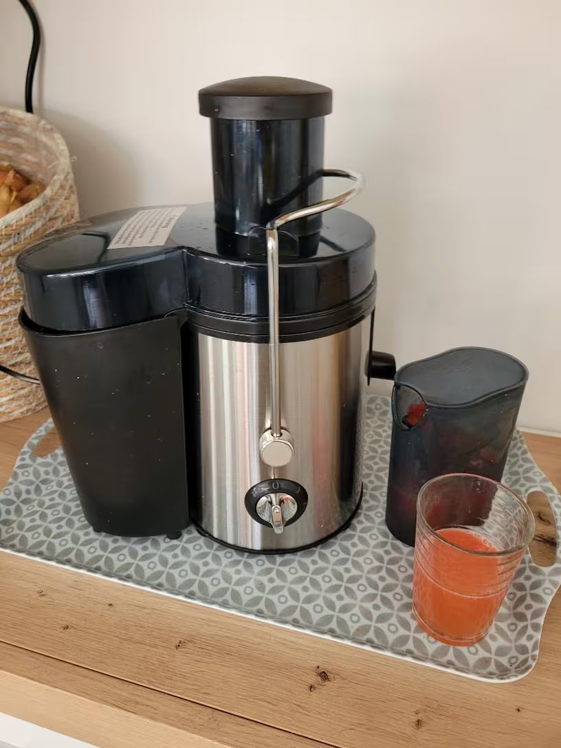 Nivo buke je sveden na minimum za centrifugalni sokovnik. Iako motor od 450W ima snagu, dizajniran je da radi efikasno i brzo, tako da proces ceđenja traje kratko i ne stvara preveliku buku.